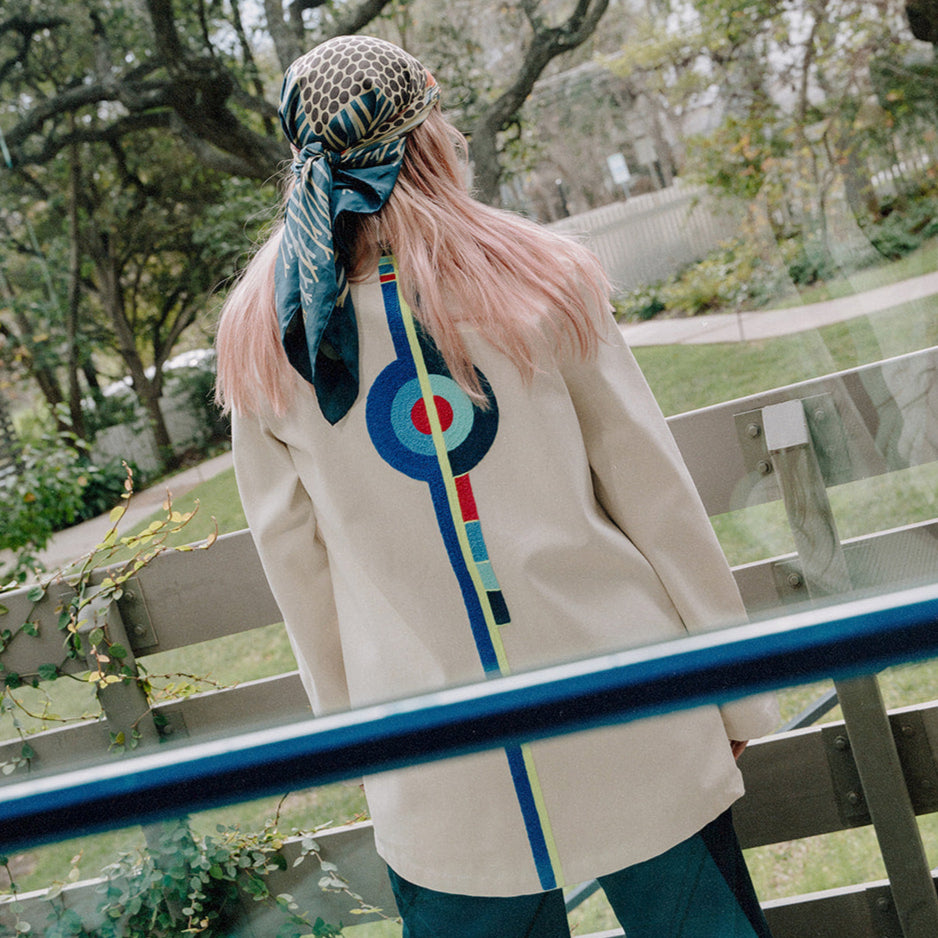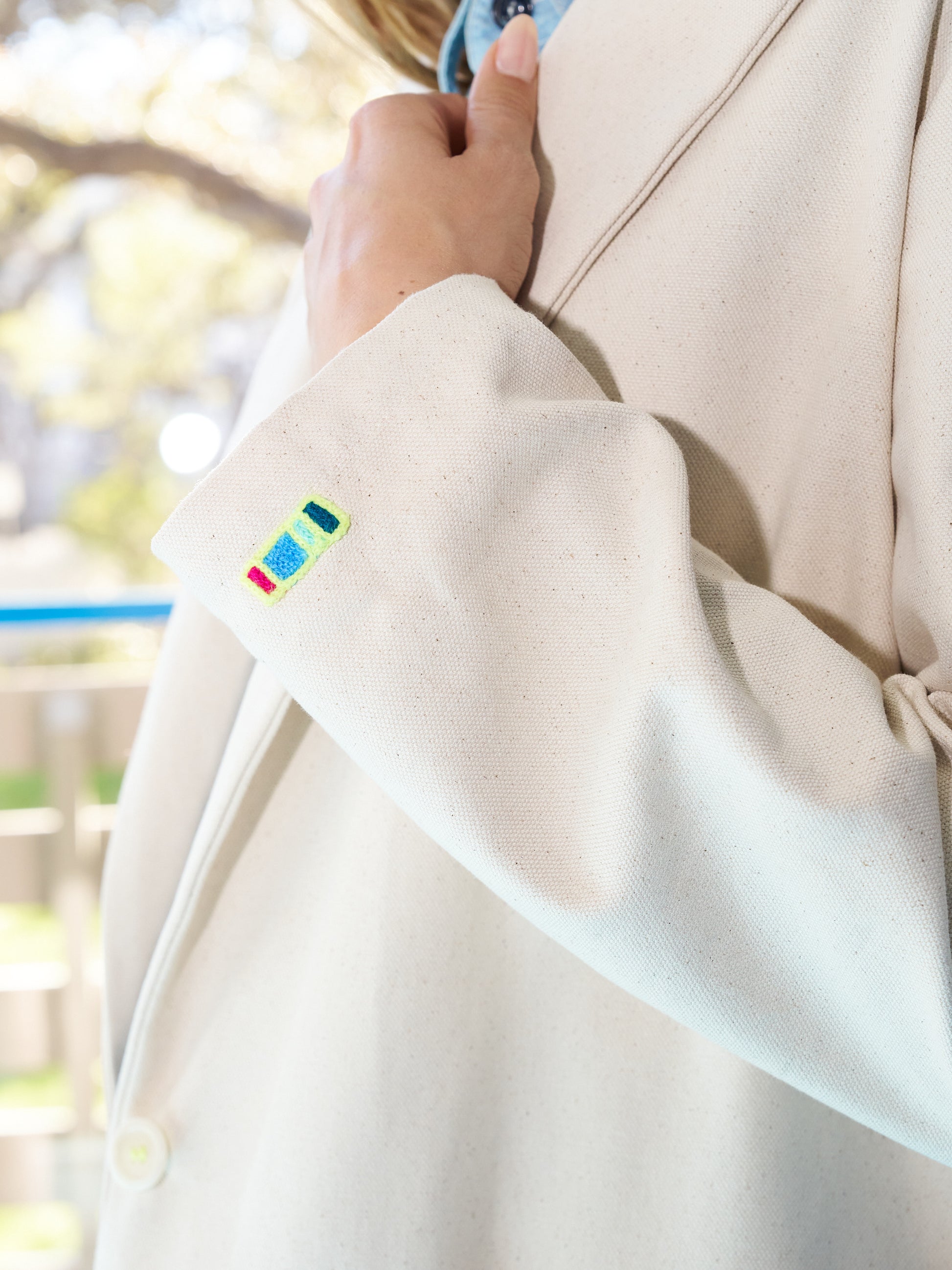 MOLYAN jackets are made from pre-shrunk, 100% cotton duck canvas material. Because each garment is handmade, natural idiosyncrasies and imperfections make each piece unique and one-of-a-kind. Threads are organically dyed to achieve vibrant colors. To preserve the integrity of the color and delicate stitching, all garments are dry clean only. Each jacket comes with a complimentary, neon orange enamel pin.